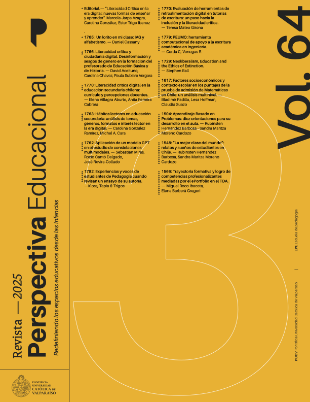 El/los autores/as otorgan licencia exclusiva y sin límite de temporalidad para que el manuscrito sea publicado en la revista Perspectiva Educacional, editada por la Pontificia Universidad Católica de Valparaíso (Chile), a través de la Escuela de Pedagogía.
